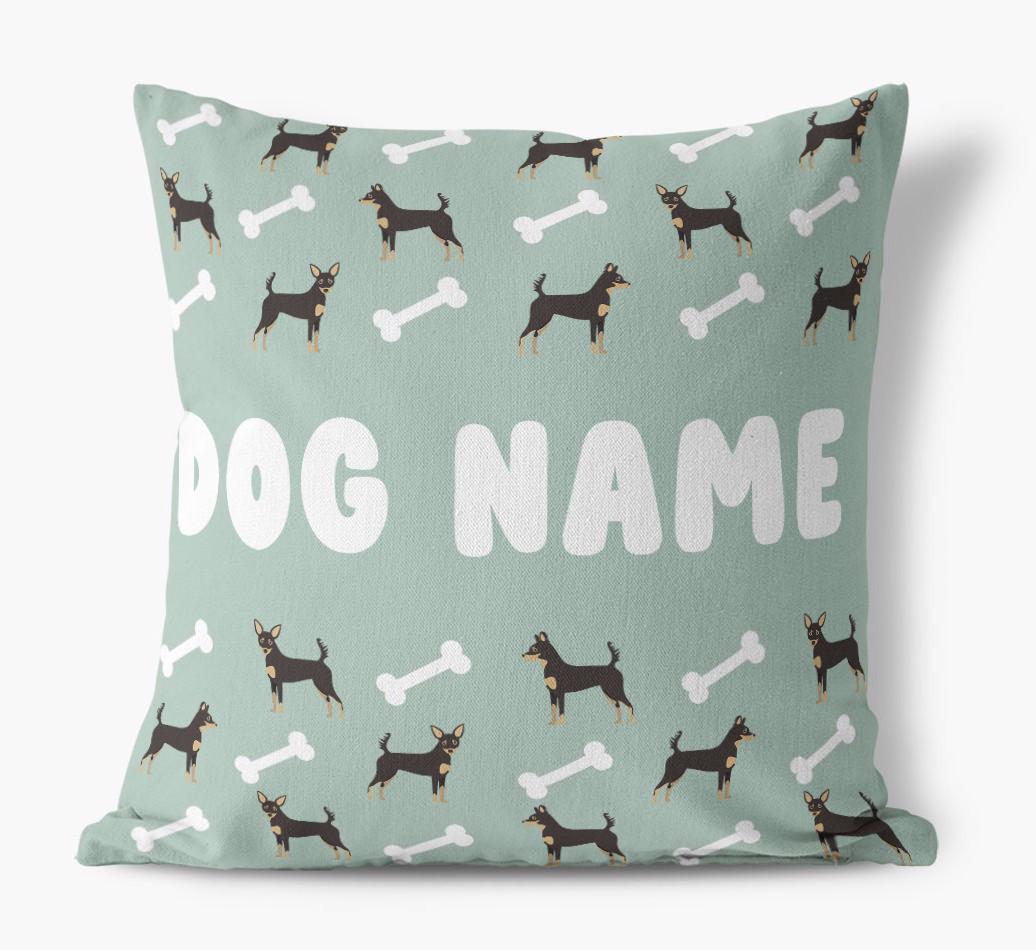 Personalized with Russian Toy’s name against a background of Russian Toy icons and bones, this gorgeous pillow is full of pawsonality.