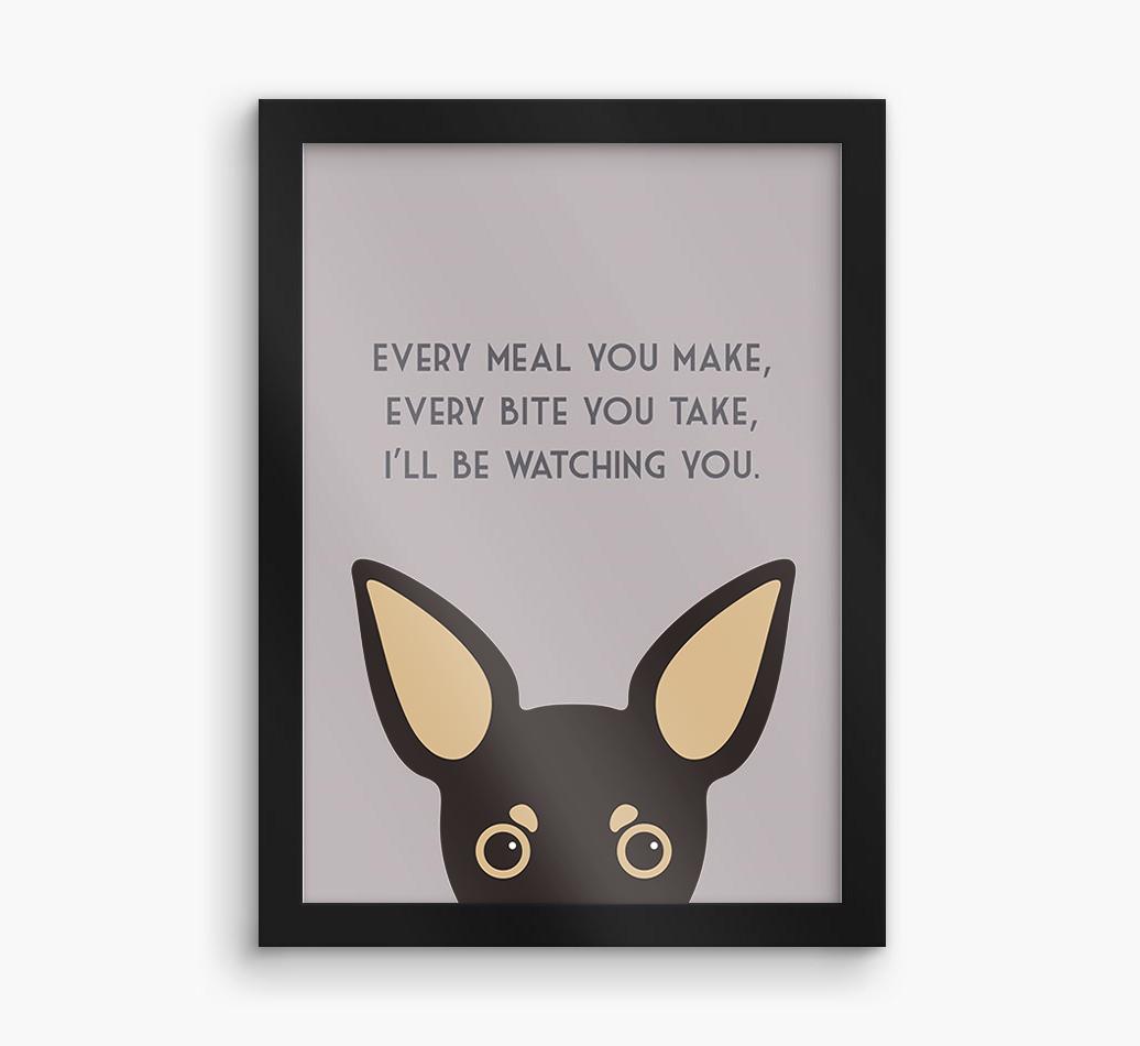 Printed with the words, ‘Every meal you make, every bite you take, I’ll be watching you’ and complete with our cute Russian Toy peeking from the bottom of the design, this artwork will look great on display in the kitchen or anywhere Russian Toy likes to watch you eat!