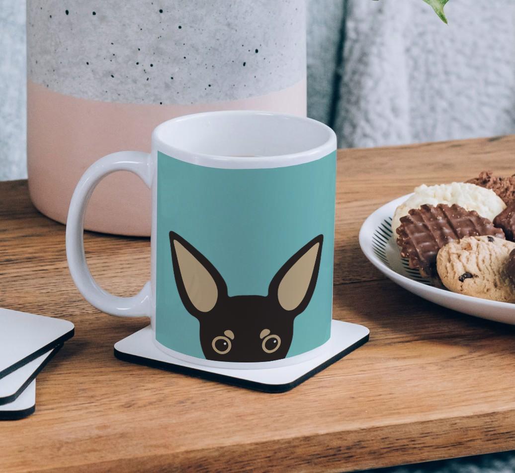Enjoy the perfect coffee break with a mug that stars your furry friend! Featuring a Yappy.com exclusive Russian Toy peeking icon, this pawgeous mug will look at home in any dog lover's kitchen and we're pretty sure Russian Toy will be a fan too.
