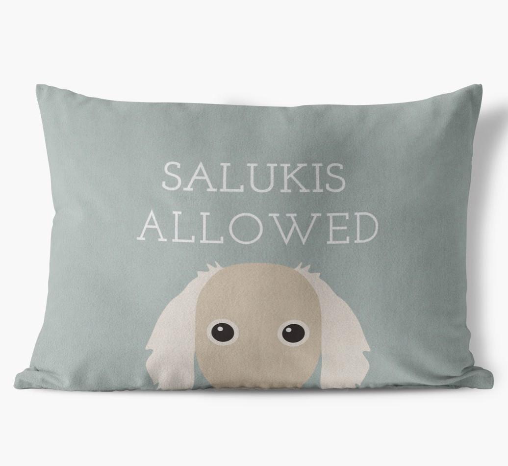 This exclusive, luxurious pillow is printed with the words ‘Salukis Allowed’, which I’m sure Your Saluki would definitely approve of.