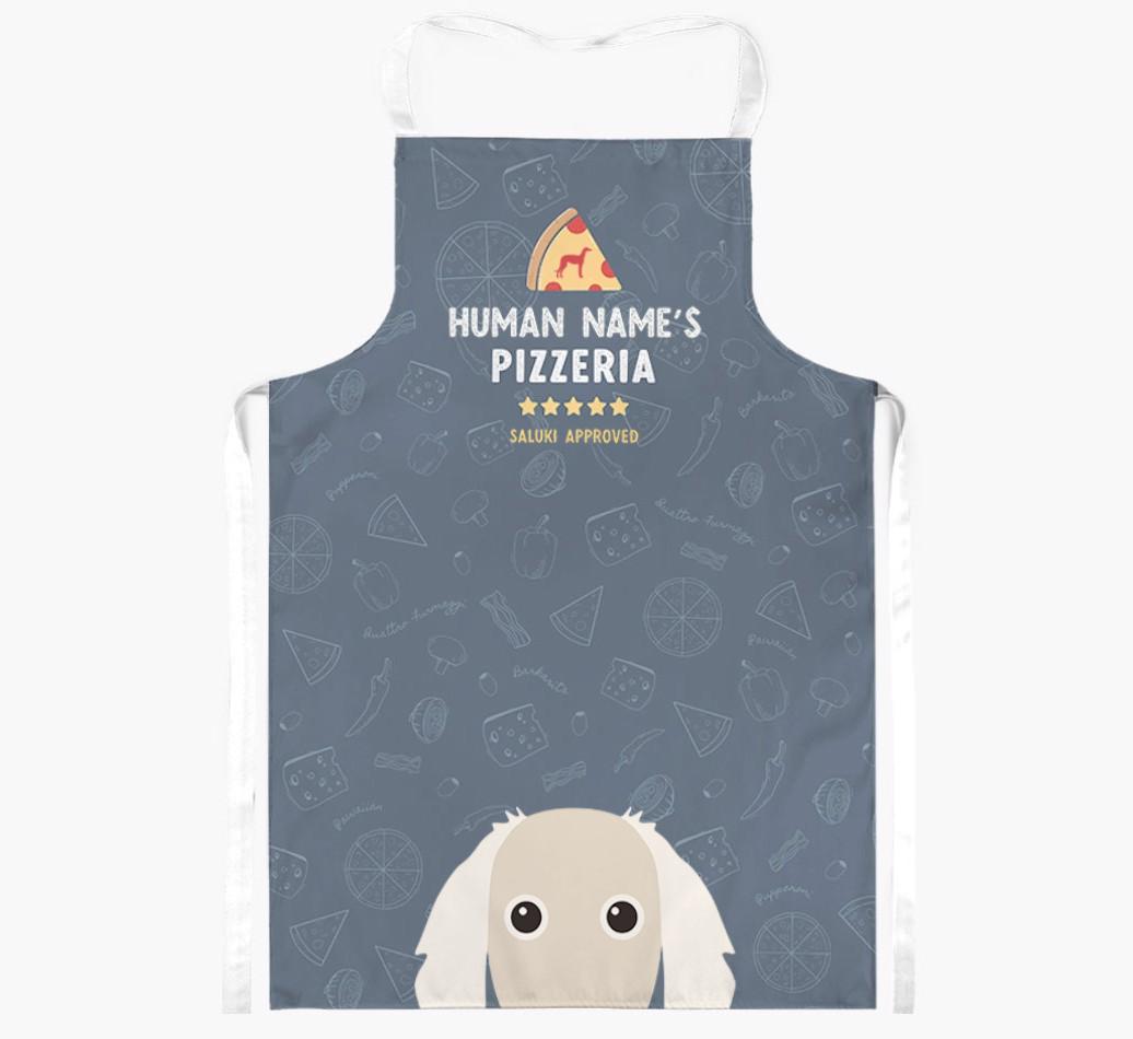Featuring your furry friend's icon and lick of approval, plus your chosen human name, this apron is pawfect for anyone who considers themselves a pizza maestro in the kitchen. Available in a choice of 5 rustic colors, it'll make any Saluki lover happy.
