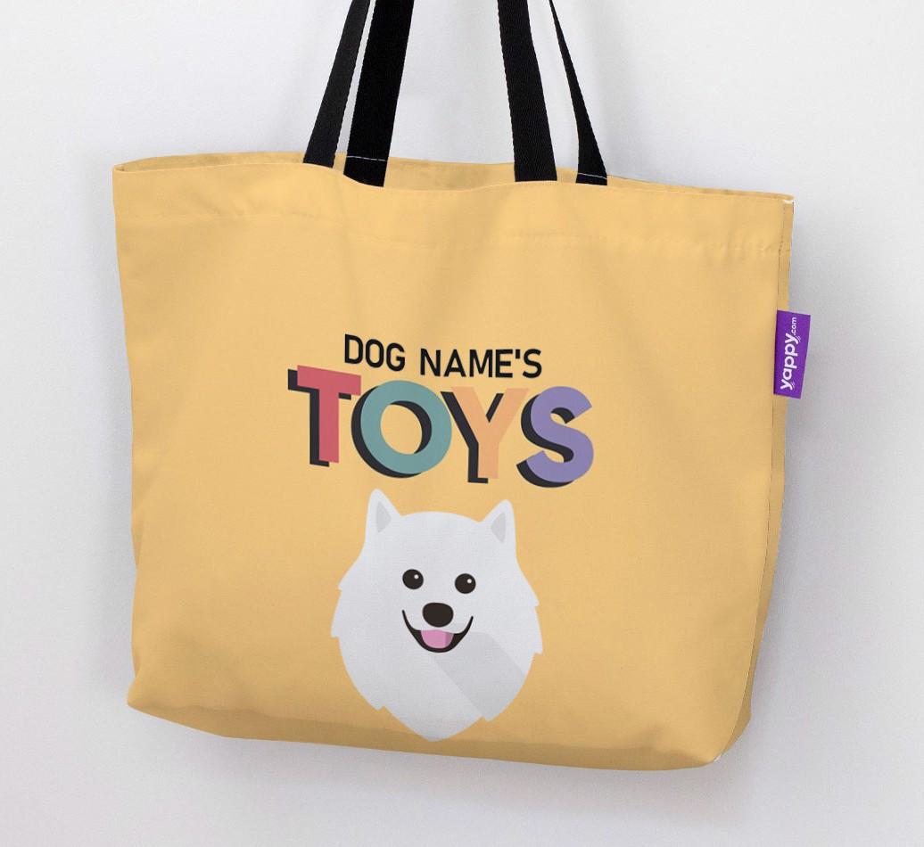 Don’t worry, we’ve got you covered with this pawsonalized canvas bag made for your Samoyed’s toy collection!