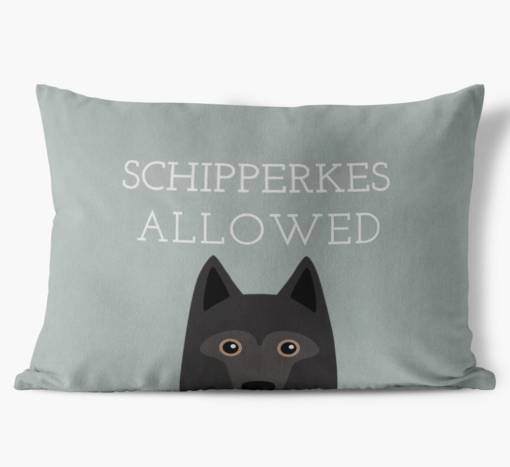 This exclusive, luxurious pillow is printed with the words ‘Schipperkes Allowed’, which I’m sure Your Schipperke would definitely approve of.