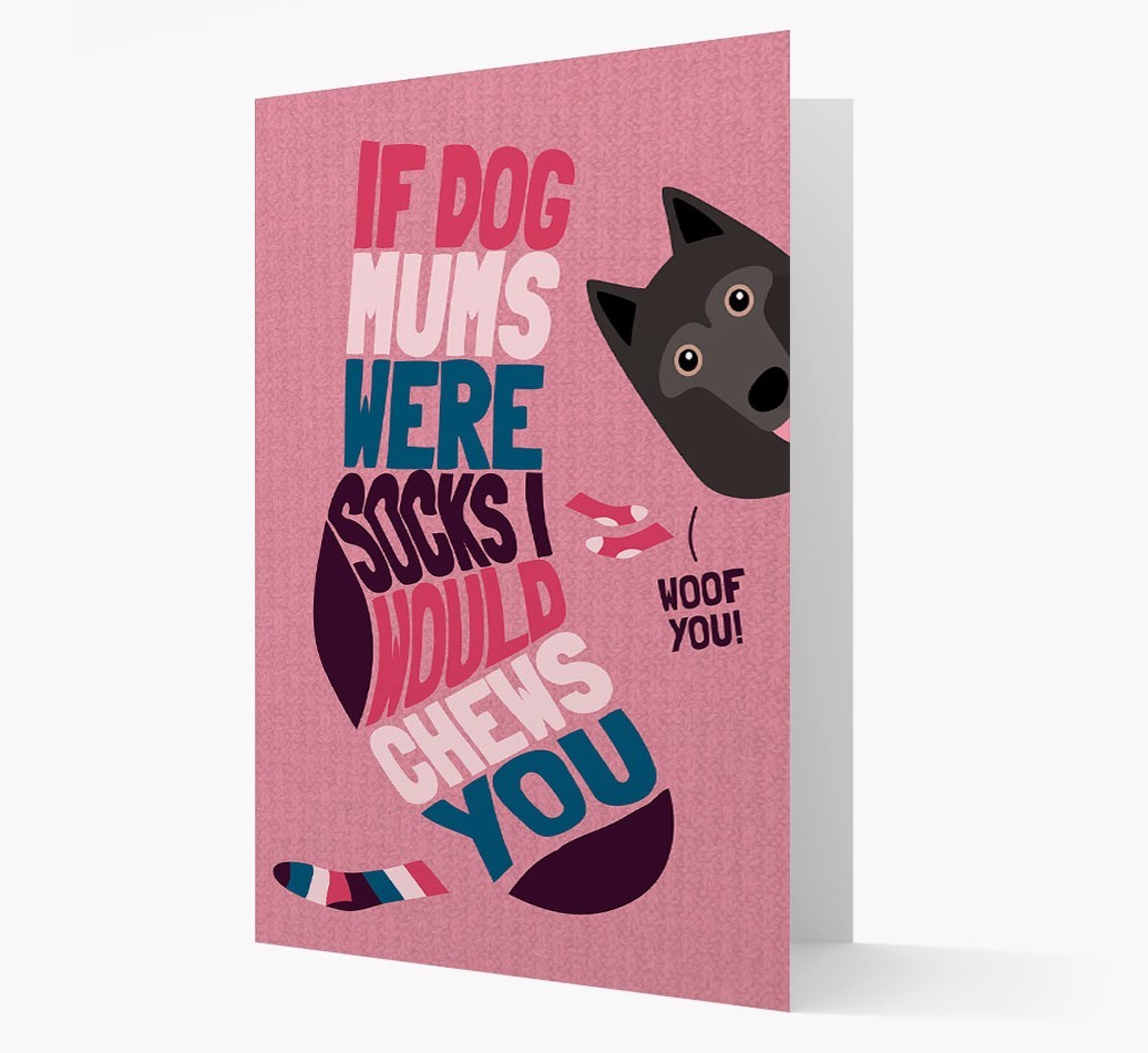 This comical card is pawfect for the Dog Mom who's pawrent to a sock-loving Schipperke.