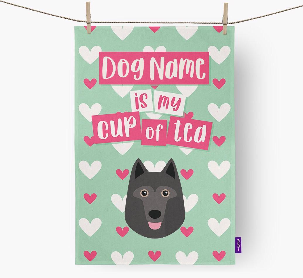 'Schipperke Is My Cup of Tea' - Personalized Schipperke Dish Towel