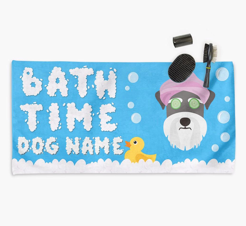 Does Your Schnauzer love bubble baths? Once they've bathed, take their bathtime experience to the next level by wrapping them up in their very own towel, that's personalized just for them.