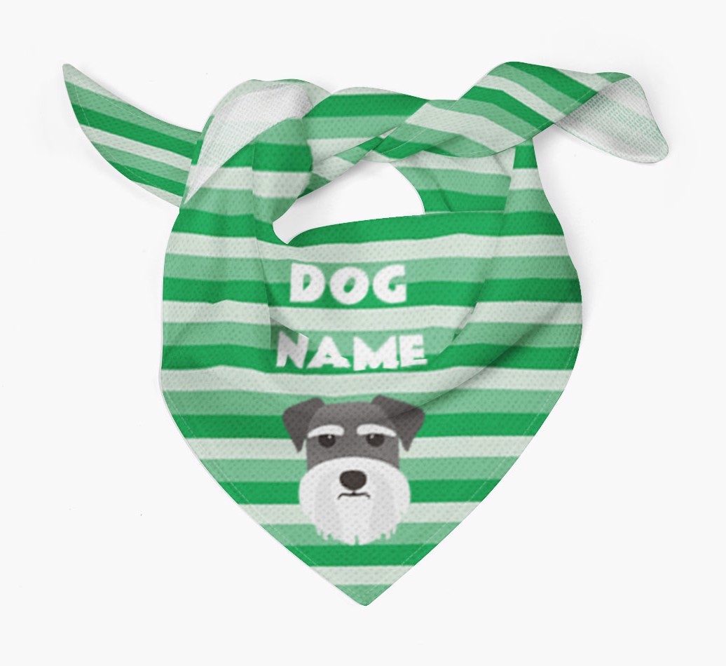 Well, now you can make sure your Schnauzer’s name is on everyone’s lips with this personalized bandana.