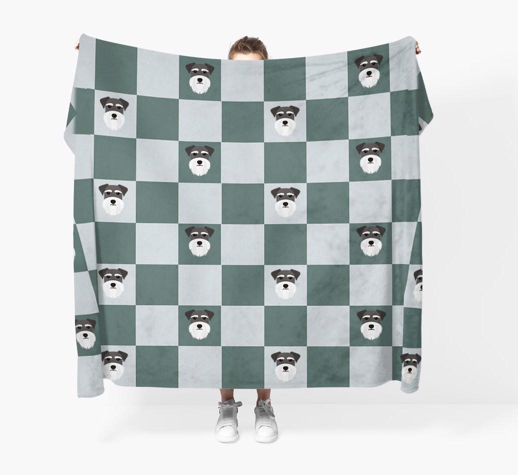 'Checkerboard' - Personalized Schnauzer Throw Blanket