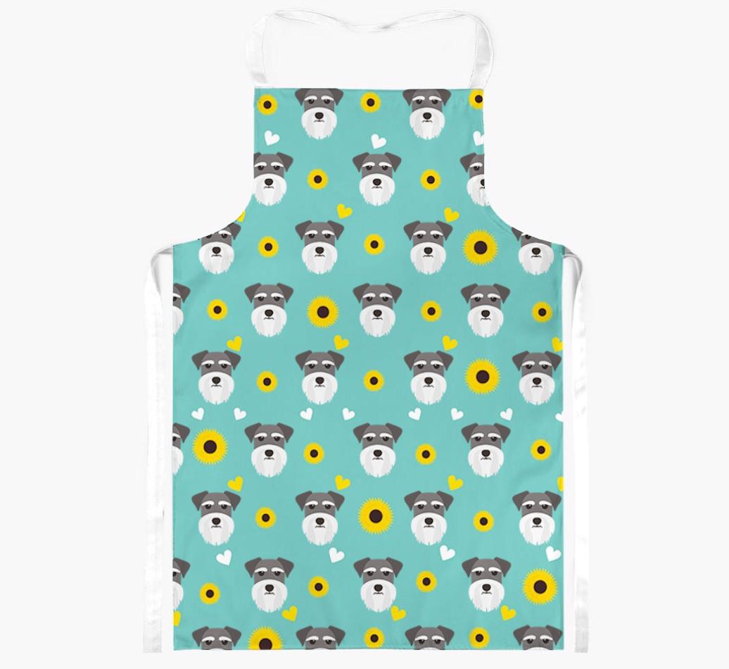 This apron has a delightful sunflower and heart pattern, and best of all - it's personalized with Schnauzer's face too! This cute and colorful apron is sure to put a smile on every dog lover's face.