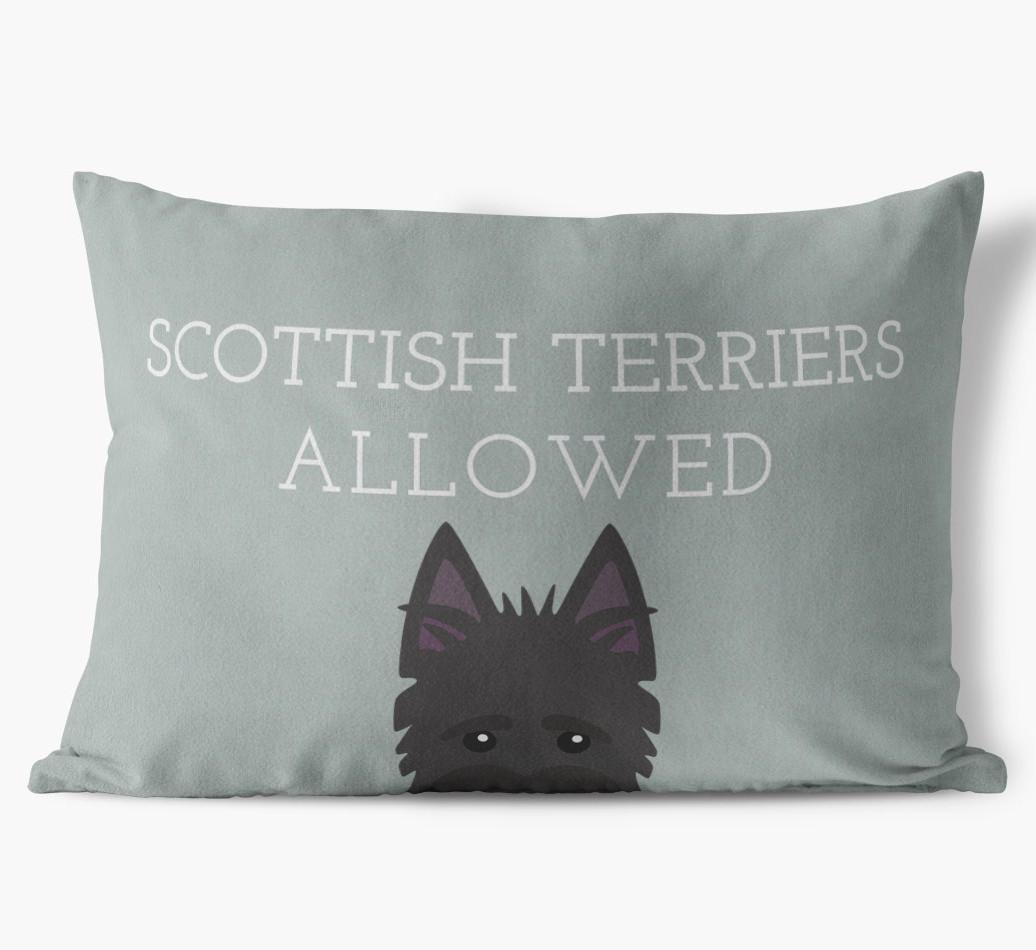 This exclusive, luxurious pillow is printed with the words ‘Scottish Terriers Allowed’, which I’m sure Your Scottish Terrier would definitely approve of.