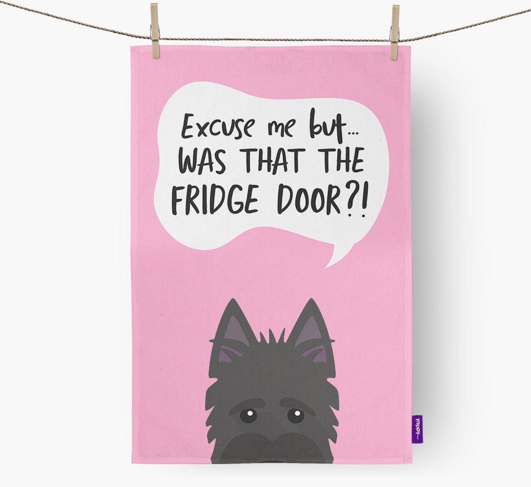 'Was That The Fridge Door?!' - Personalized Scottish Terrier Dish Towel