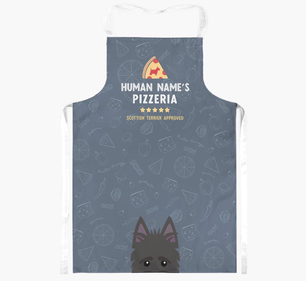Featuring your furry friend's icon and lick of approval, plus your chosen human name, this apron is pawfect for anyone who considers themselves a pizza maestro in the kitchen. Available in a choice of 5 rustic colors, it'll make any Scottie lover happy.