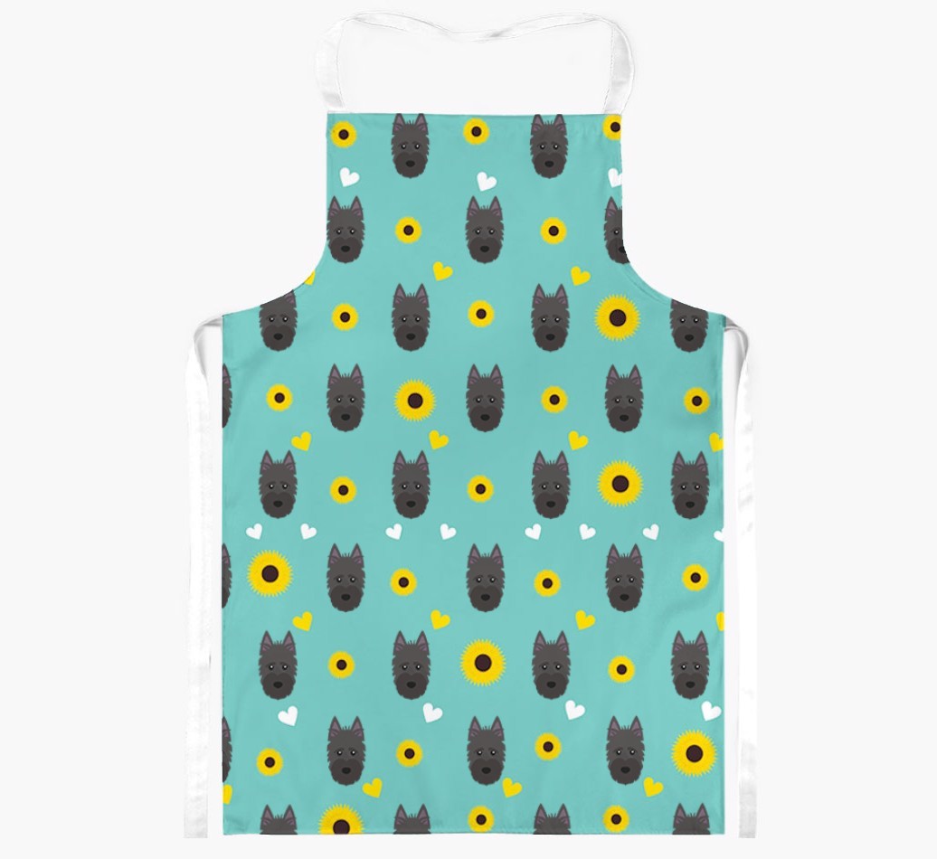 This apron has a delightful sunflower and heart pattern, and best of all - it's personalized with Scottish Terrier's face too! This cute and colorful apron is sure to put a smile on every dog lover's face.