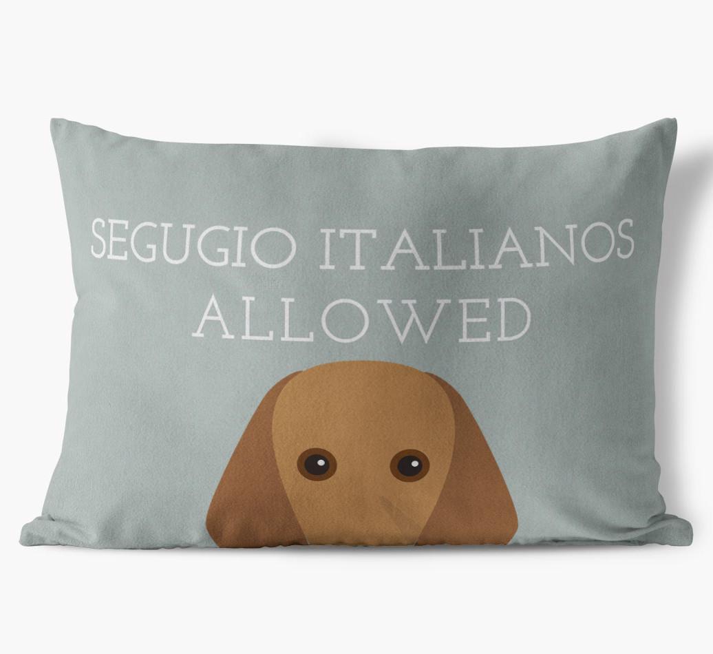 This exclusive, luxurious pillow is printed with the words ‘Segugio Italianos Allowed’, which I’m sure Your Segugio Italiano would definitely approve of.