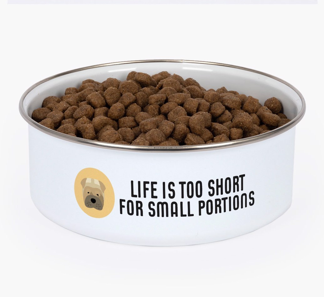 If Shar Pei is a pup with a big appetite, we've got just the food bowl for them! Printed with the phrase, "life is too short for small portions", you'll fur-ever be reminded to give your furry friend an extra helping.