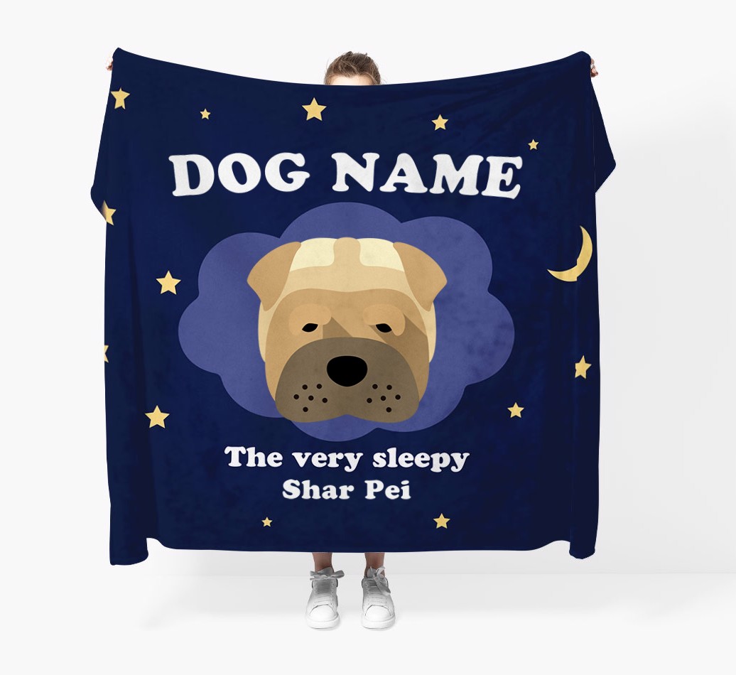 'The Very Sleepy...' - Personalized Shar Pei Throw Blanket