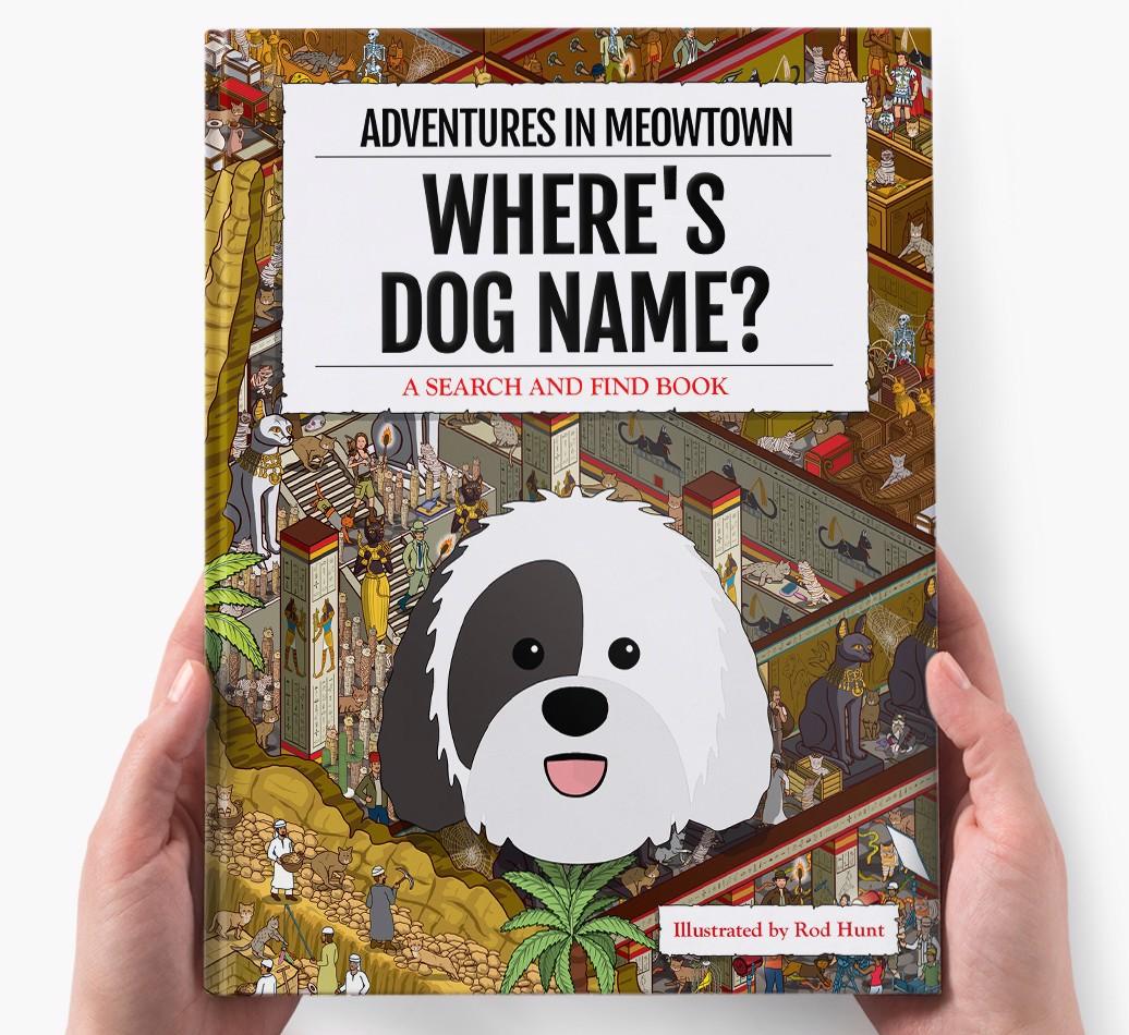 Get ready to unleash your inner detective with our popular Search & Find book, ‘Where’s (insert dog name)?’ It’s the personalized dog book everyone’s yapping about! With twelve beautifully illustrated locations to explore, we challenge you to find your adventurous {breedShortName} on each action-packed page. Can you spot all the canine cameos and funny parodies too?