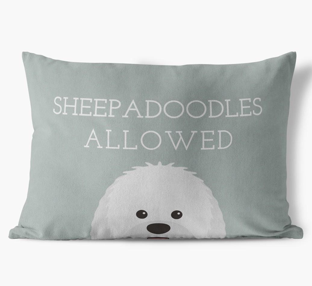This exclusive, luxurious pillow is printed with the words ‘Sheepadoodles Allowed’, which I’m sure Your Sheepadoodle would definitely approve of.
