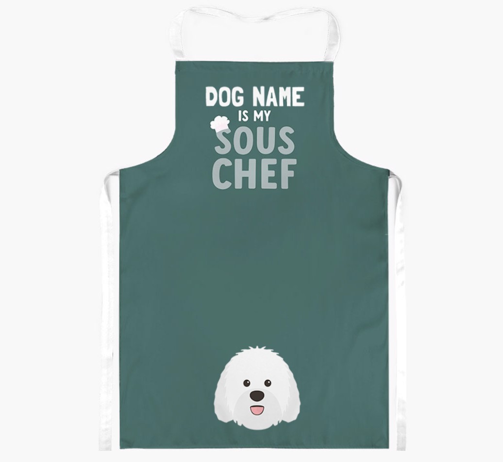 With this delectable apron, now you can show off your fur-bulous sous chef! Featuring your furry friend's adorable icon and available in a choice of stylish colors, this custom apron is perfect for adding a pop of color to your kitchen and protecting your clothes from pesky cooking splashes.