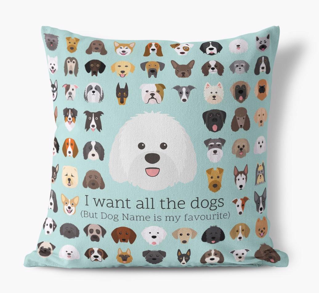 I Want All the Dogs: Personalized Sheepadoodle Canvas Pillow
