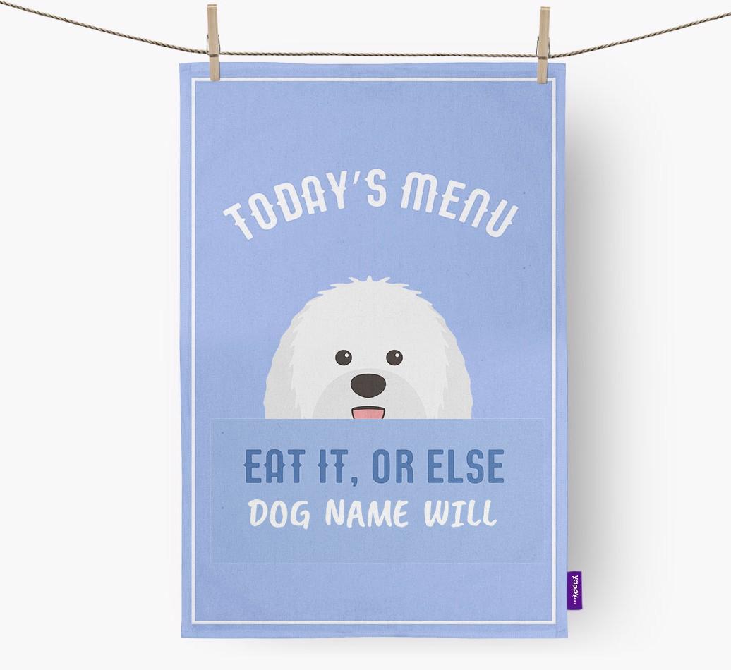 'Eat It, Or Else...' - Personalized Sheepadoodle Dish Towel