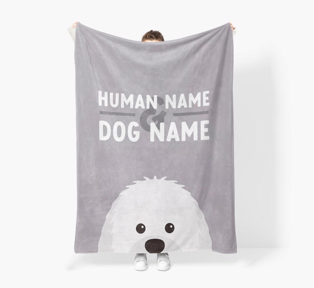 Human & Dog Name: Personalized Sheepadoodle Premium Sherpa Fleece Blanket