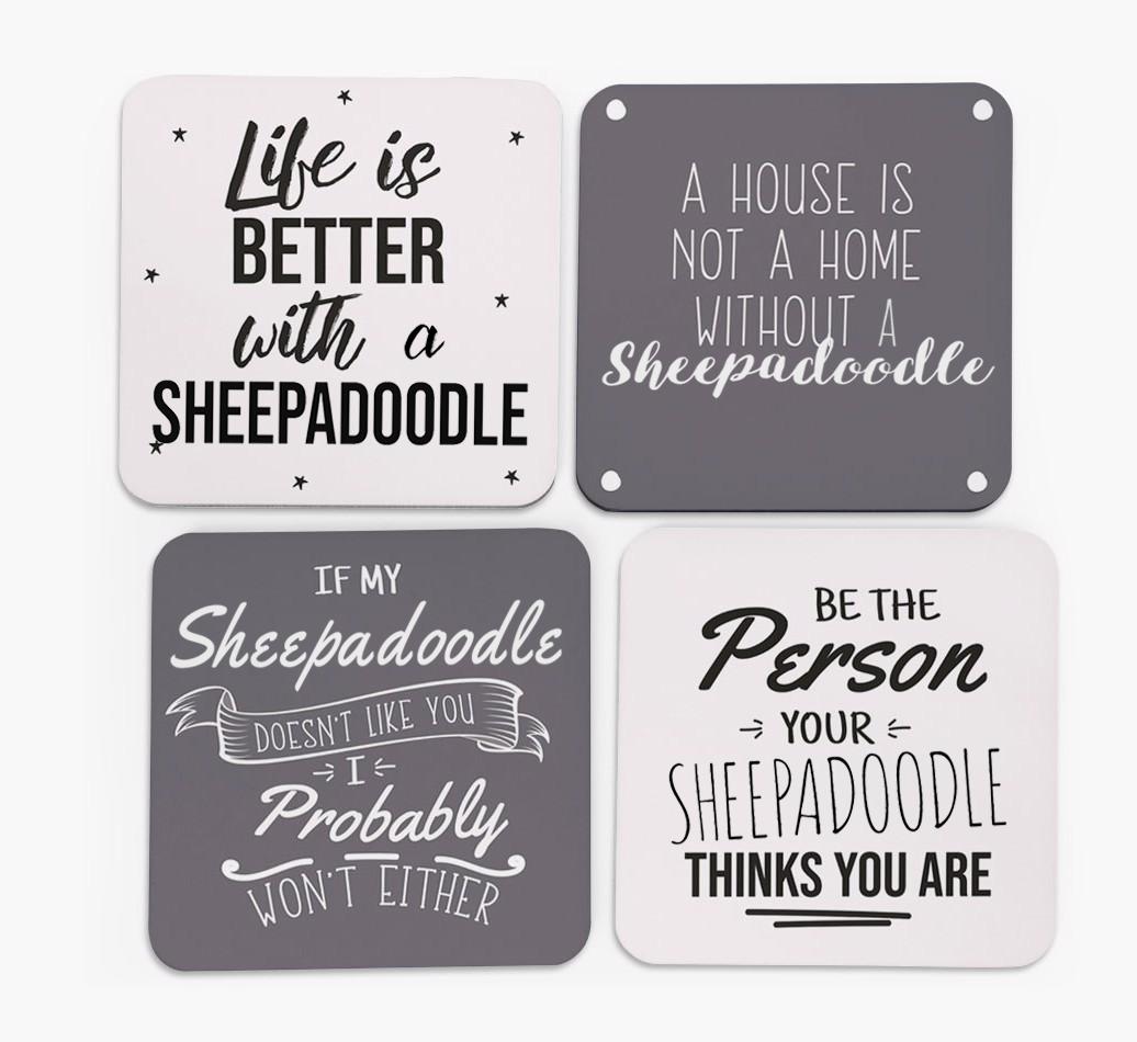'Sheepadoodle Quote' - Personalized Sheepadoodle Coasters (Set of 4)