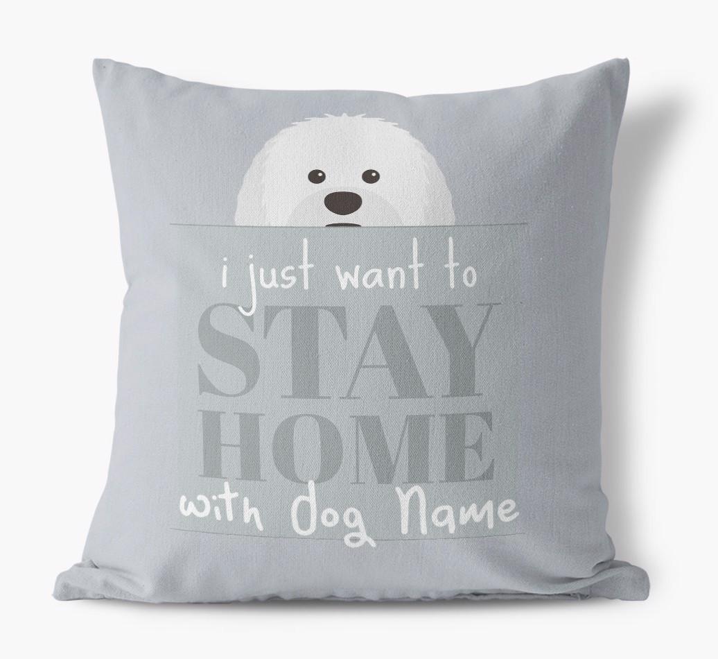 Stay Home: Personalized Sheepadoodle Canvas Pillow