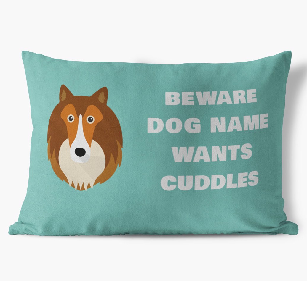 Beware of Cuddles: Personalized Shetland Sheepdog Soft Touch Pillow