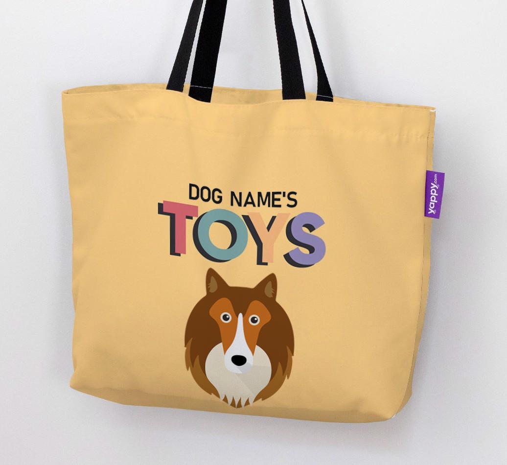 Don’t worry, we’ve got you covered with this pawsonalized canvas bag made for your Shetland Sheepdog’s toy collection!