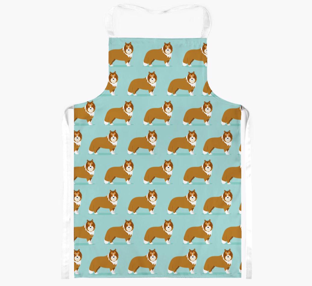 Personalized with row-upon-row of adorable Shetland Sheepdog icons, this adorable apron is sure to make you smile while you're cooking up a storm.