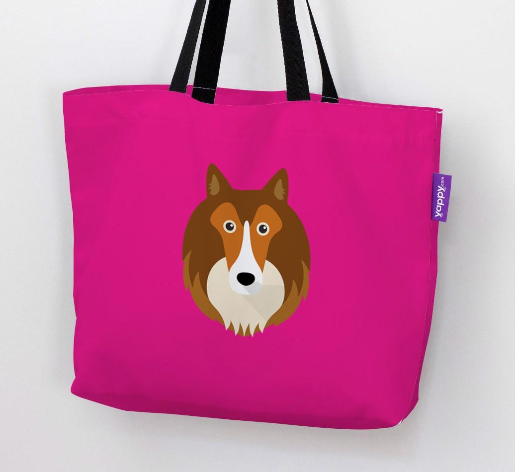 This Canvas Bag features an exclusive Shetland Sheepdog icon printed on a bright, bold background.