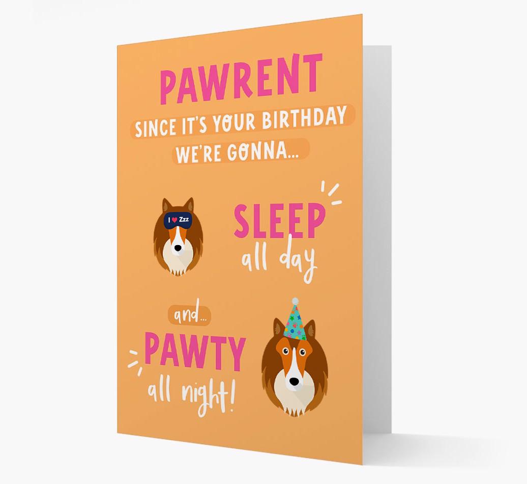 If Shetland Sheepdog woofs to pawty all day and sleep all night, this card encourages their pawrent to do it with them on their birthday!