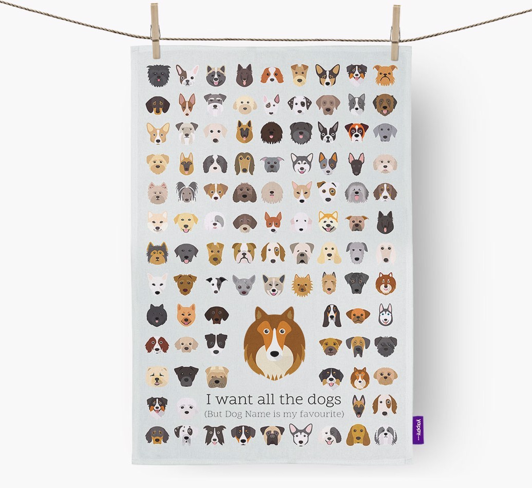 'I Want All the Dogs' - Personalized Shetland Sheepdog Dish Towel