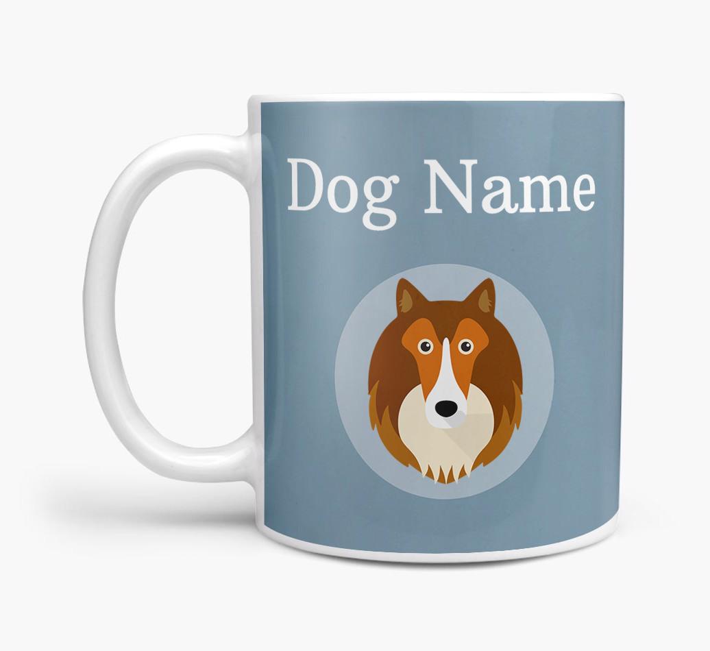 This Yappy exclusive mug features a large Sheltie icon and is fully personalized with Shetland Sheepdog's name to make it extra special.