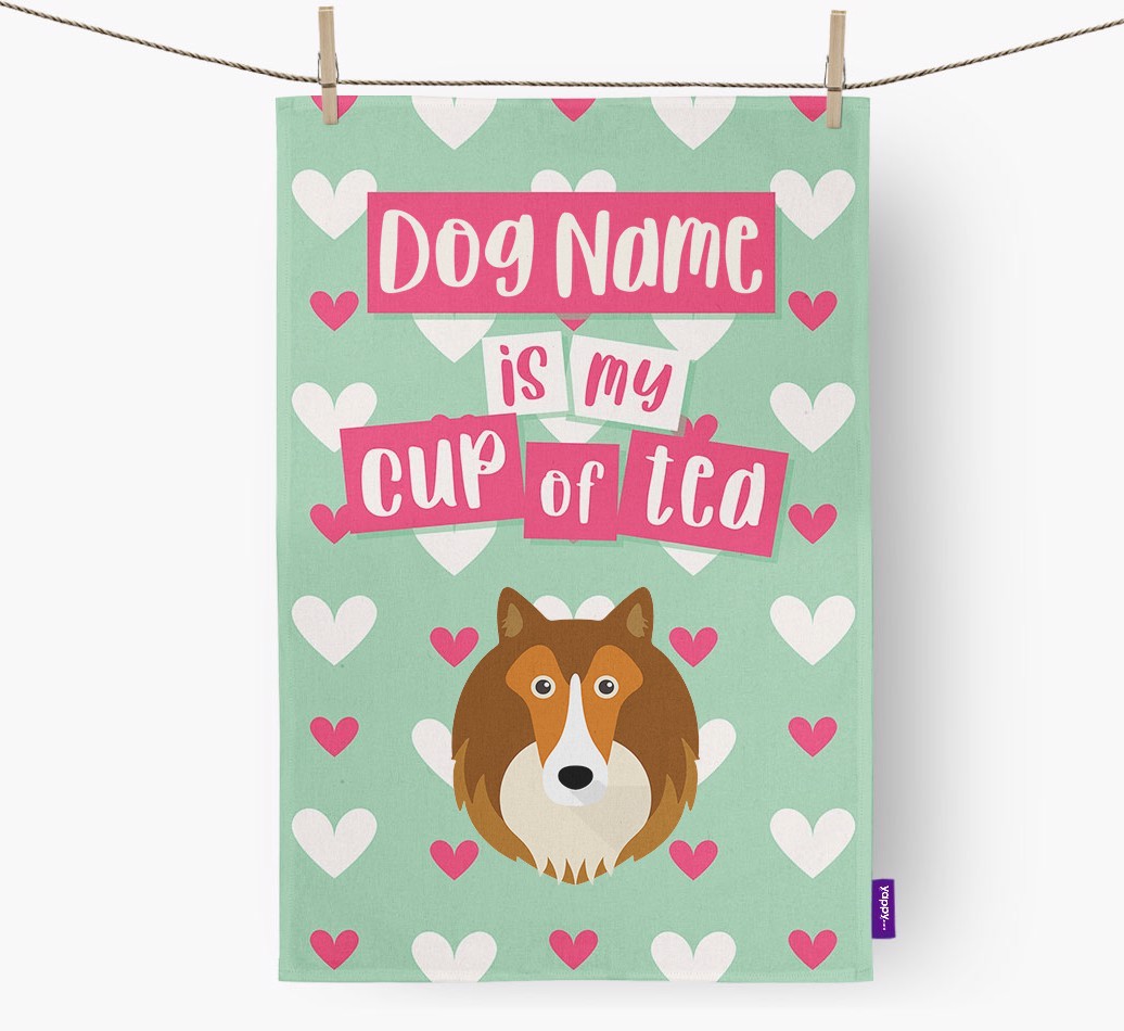 'Shetland Sheepdog Is My Cup of Tea' - Personalized Shetland Sheepdog Dish Towel