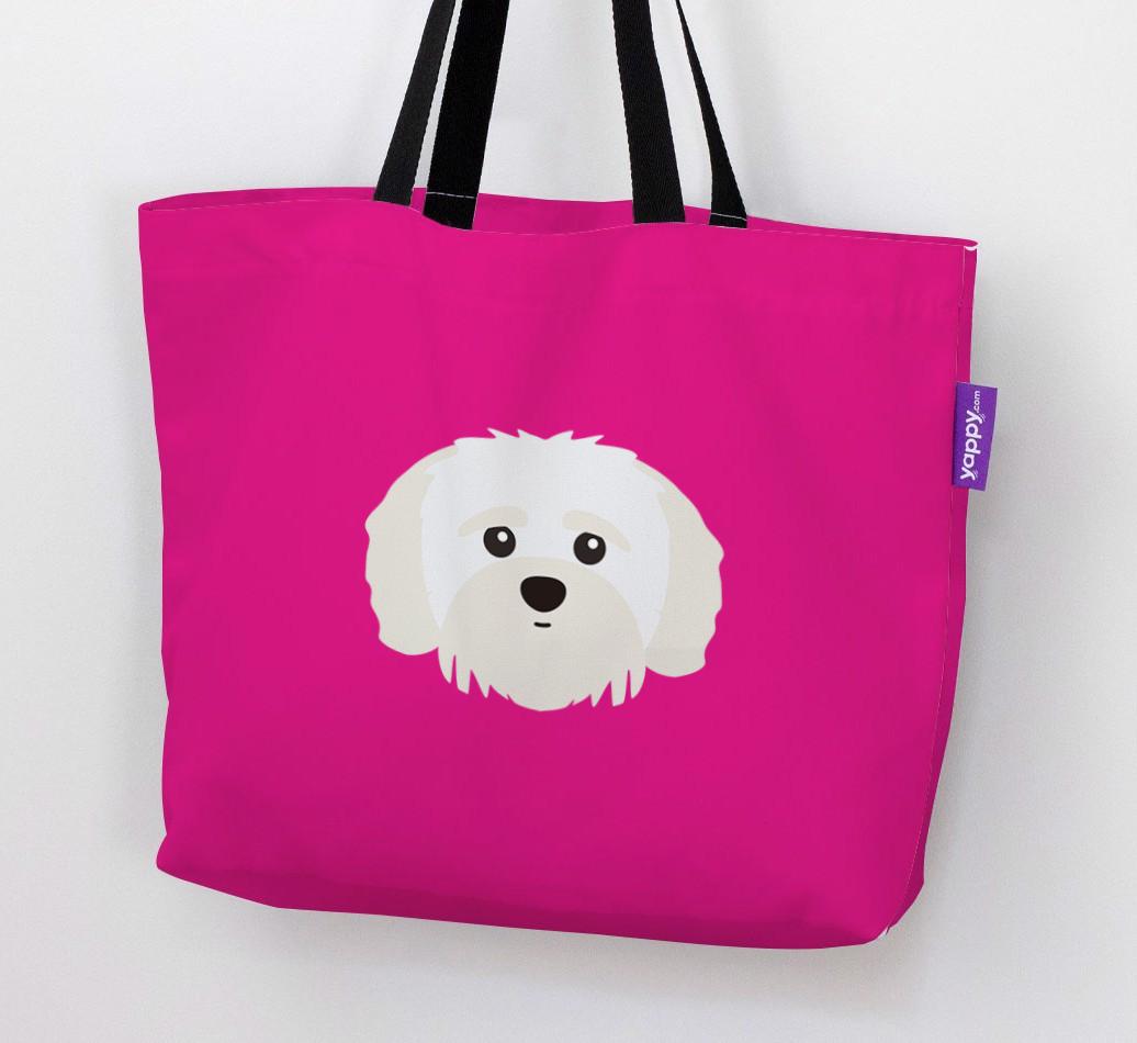 This Canvas Bag features an exclusive Shih-poo icon printed on a bright, bold background.