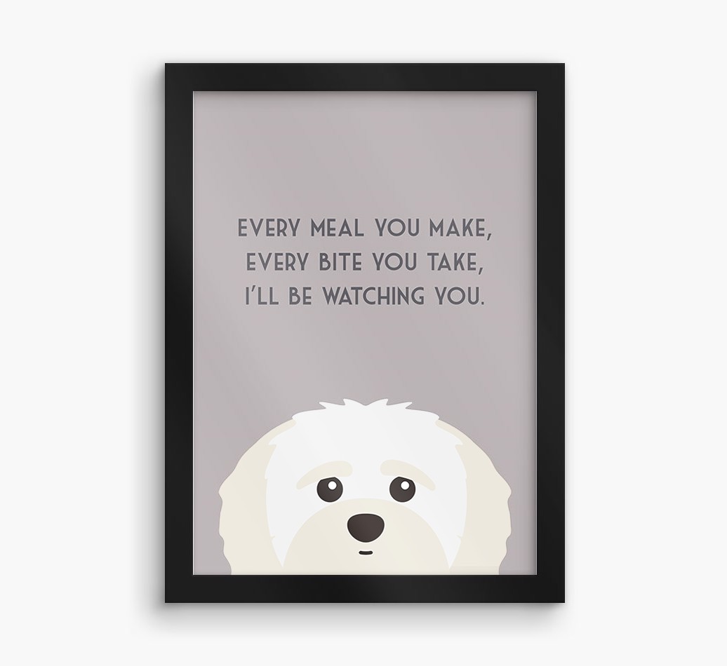 Printed with the words, ‘Every meal you make, every bite you take, I’ll be watching you’ and complete with our cute Shih-poo peeking from the bottom of the design, this artwork will look great on display in the kitchen or anywhere Shih-poo likes to watch you eat!