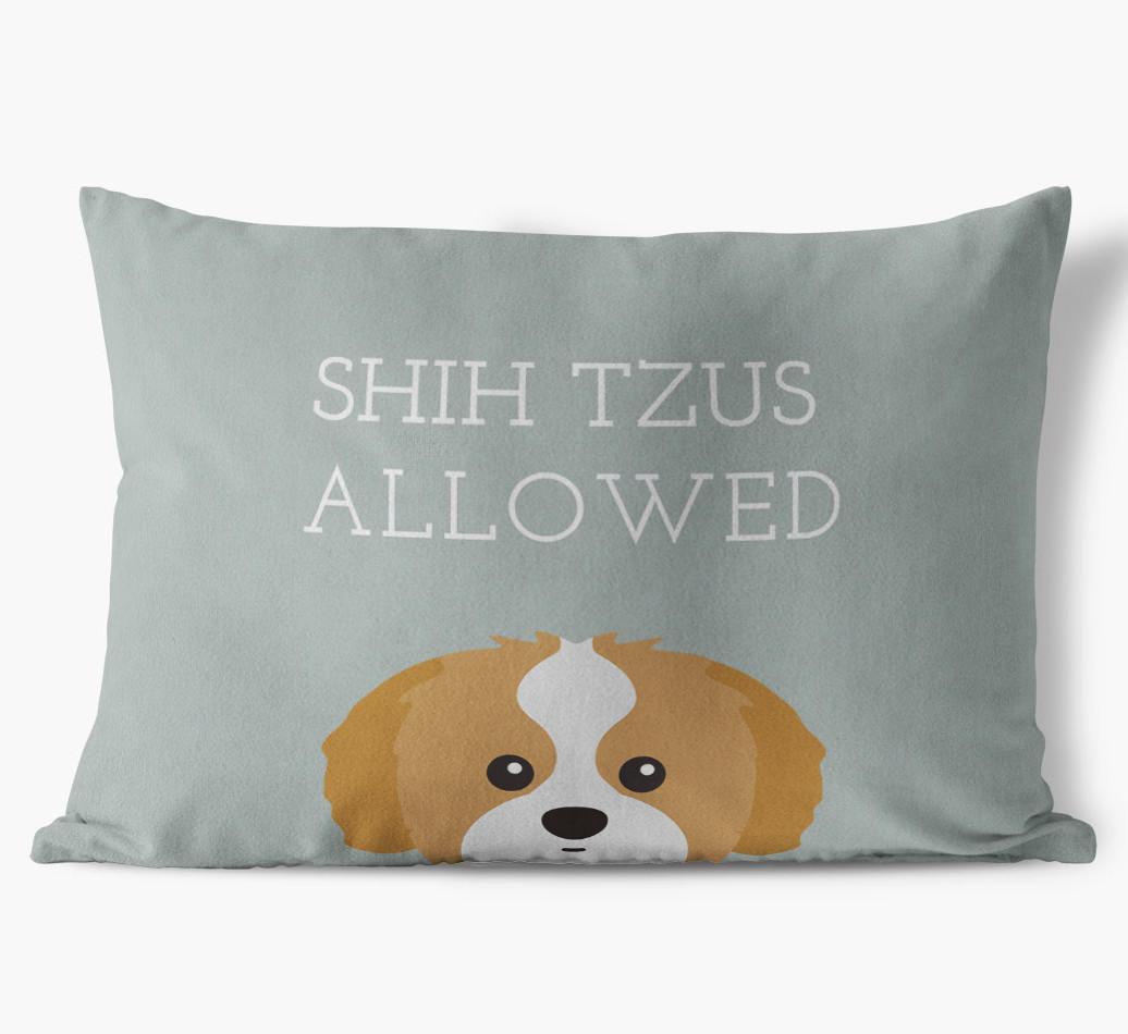 This exclusive, luxurious pillow is printed with the words ‘Shih Tzus Allowed’, which I’m sure Your Shih Tzu would definitely approve of.