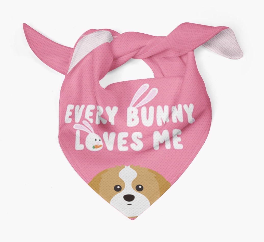 Tailored with the fabulous saying: 'Every Bunny Loves Me', this bandana is the perfect addition to your Shih Tzu's wardrobe! Available in four egg-ceptional colors and personalized with your Shih Tzu's icon, this is the perfect pawchase for Easter!