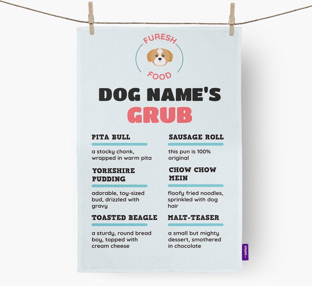 This dish towel design serves up plenty of doggy dishes that'll have you howling with laughter!