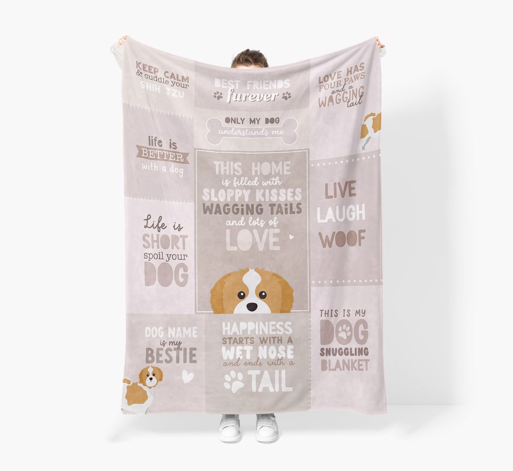 Filled with pawgeous quotes about your furry friend, this blanket is the perfect way to make naptimes with your Shih Tzu the coziest ever.