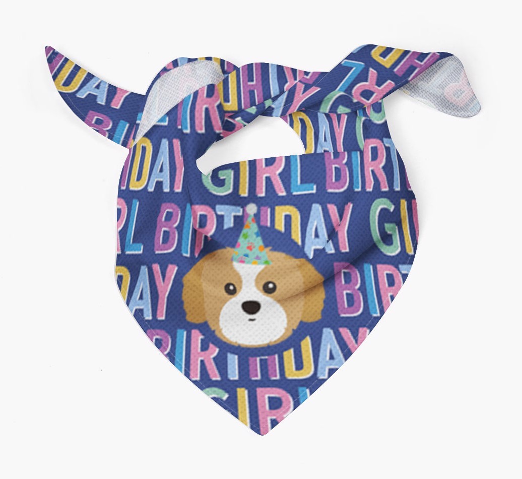 Featuring a text pattern that reads 'birthay girl' and personalized with Shih Tzu's cute icon (complete with a fun party hat), your Shih Tzu will look simply pawgeous on their special day when they're wearing this bandana.