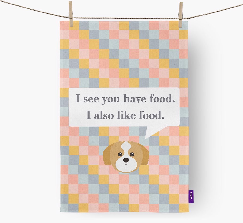 If your Shih Tzu is a full time snack machine, this dish towel may be the ideal way to warn your guests.