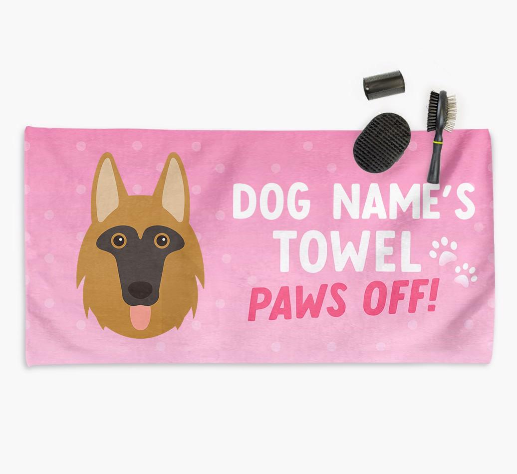 Perfect for messy pups and for pampering your Shollie at bathtime, this soft and absorbent towel is made for cleaning your mucky pup and drying them off in a flash. It's personalized with Shollie's name and icon and is printed with a message for everyone else to keep their paws off it!