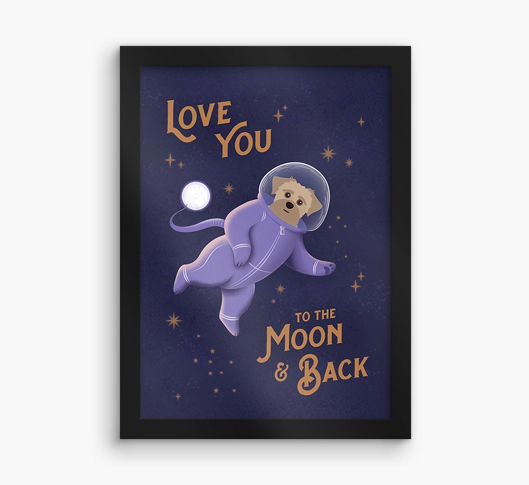 Starring your adventurous Shorkie dressed as an astronaut and printed with the words, 'love you to the moon & back', this artwork is a fun and unique way to put your four-legged friend on display and add canine charm to your home.