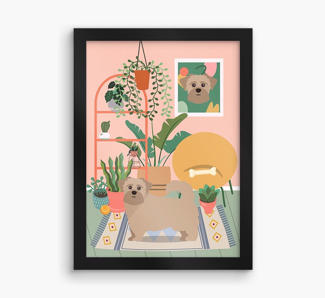 This contemporary piece of wall art pairs a chic living space with lovely pastel tones and a jungle of houseplants. Complete with the one that makes your house a home - Shorkie! - this print is a wonderful way to display your love for your pooch.