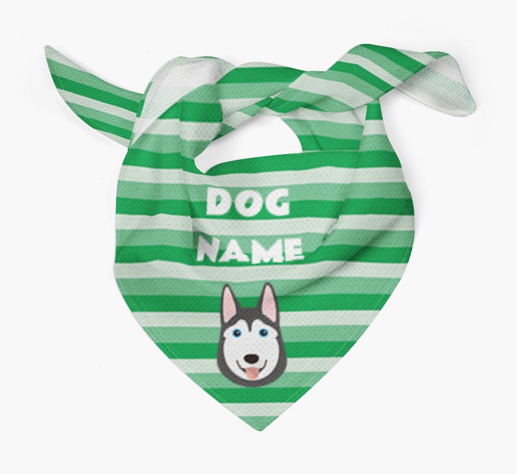 Well, now you can make sure your Siberian Husky’s name is on everyone’s lips with this personalized bandana.