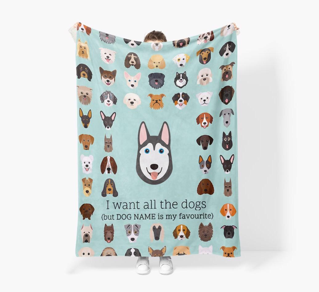 'All The Dogs' - Personalized Siberian Husky Blanket: Premium Sherpa Fleece