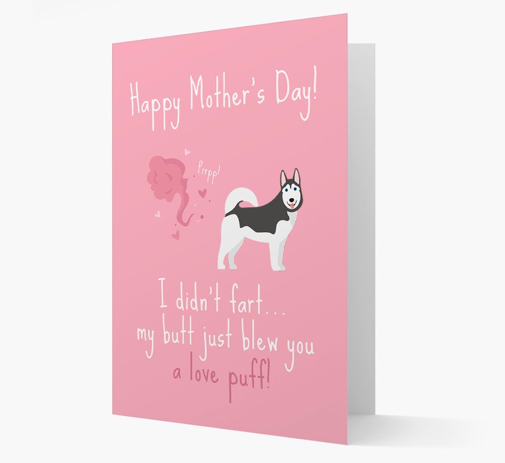 Make her laugh this Mother's Day with a funny card from Siberian Husky. Because what could be better than receiving a "love puff" from her Siberian Husky!